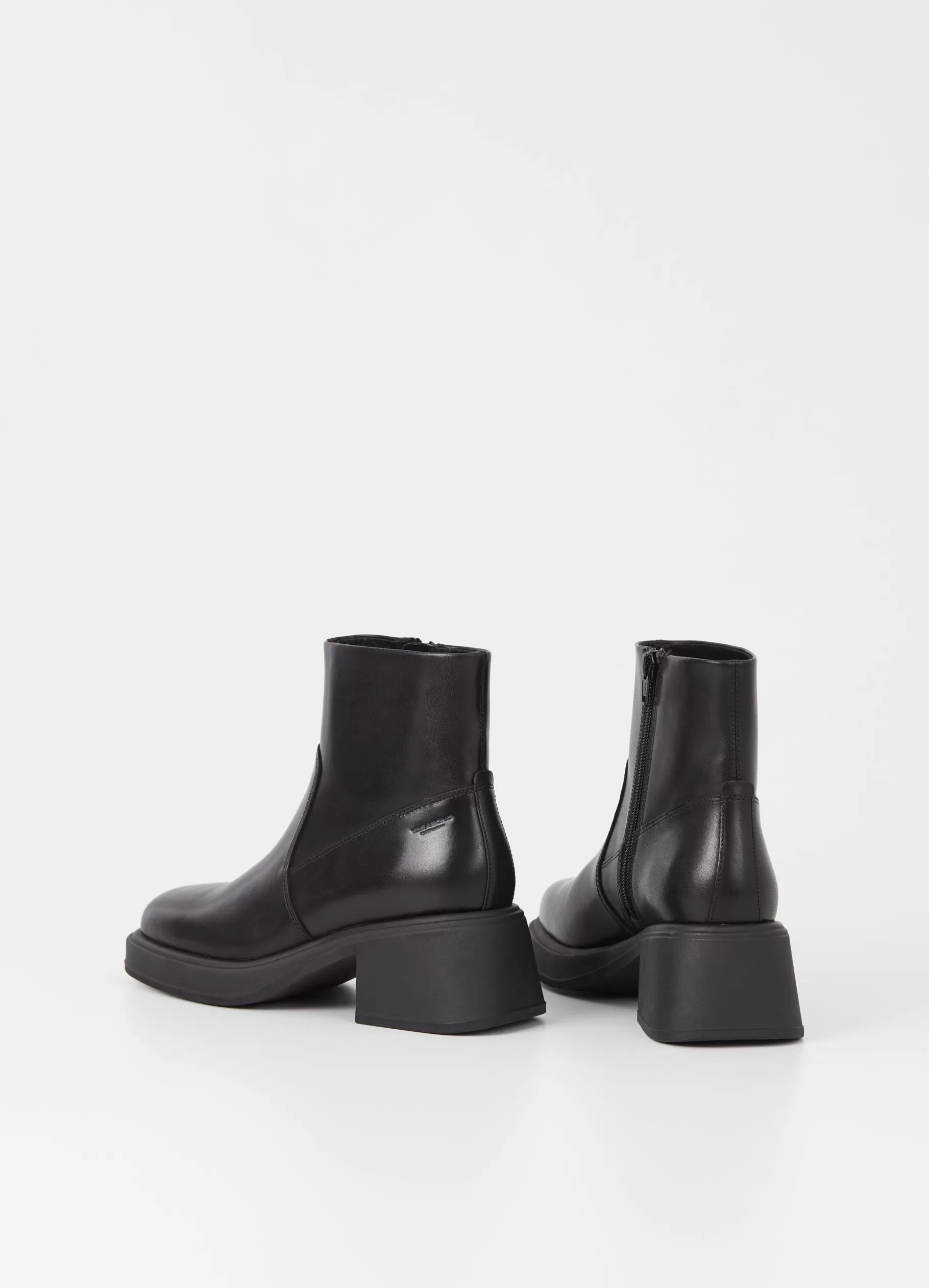 Dorah is een enkellaarsje voor elke dag met een chunky look. De stijl is gemaakt van zwart leer en is afgewerkt met een vierkante neusvorm, decoratieve naden en een rits aan de binnenkant. Met een chunky blokhak van 59mm.